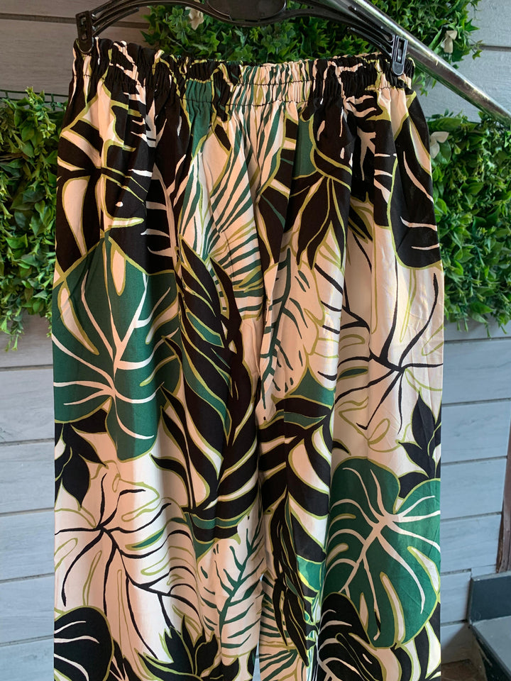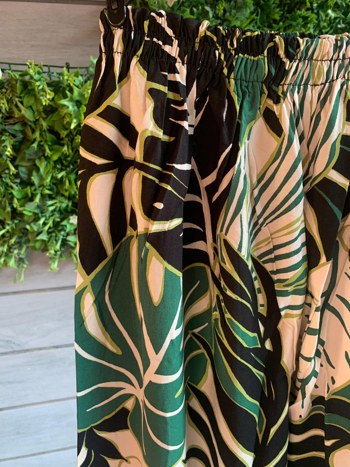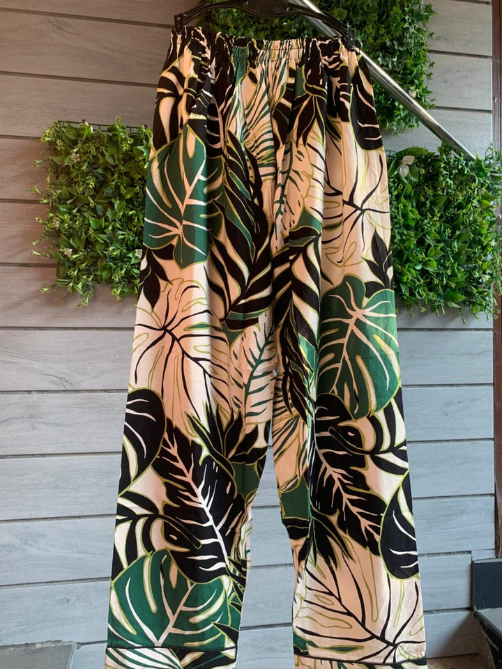 Vibrant Tropical Print: Bold green and black leaf pattern adds a fun, stylish touch to your loungewear.